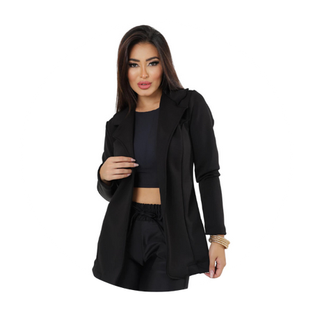 Conjunto Feminino de Alfaiataria com Blazer, Colete Duplo e Shorts Curto Sofisticado