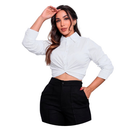 Macaquinho Feminino Bella em Alfaiataria com Amarração nas Costas Elegante para Verão