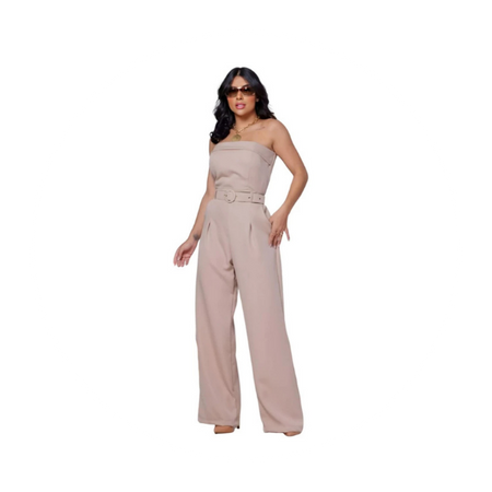Conjunto Feminino Elegante em Alfaiataria – Blusa Tomara Que Caia com Elástico nas Costas e Calça Pantalona