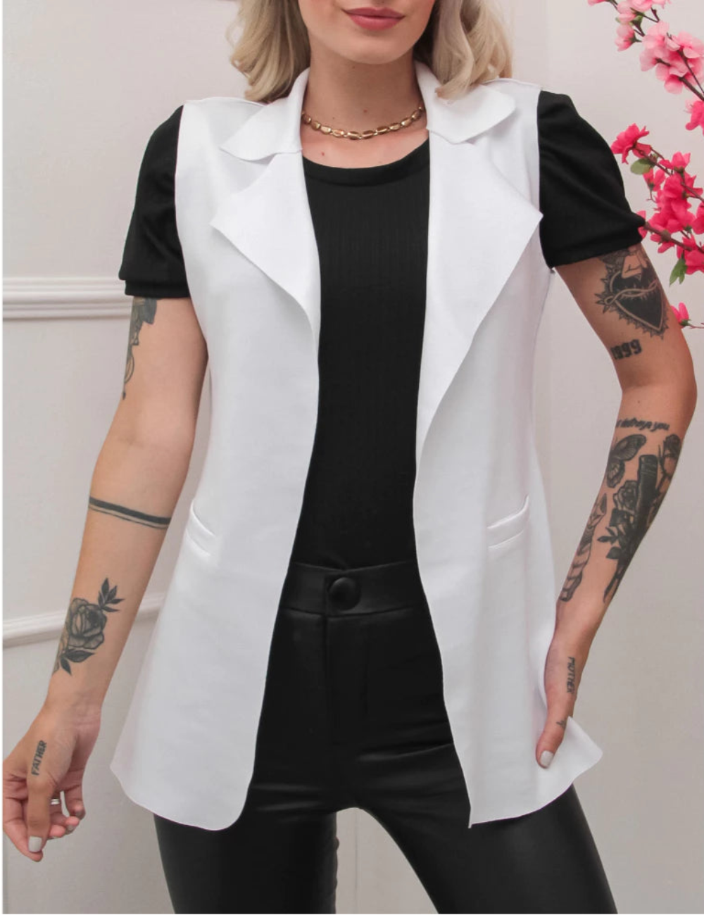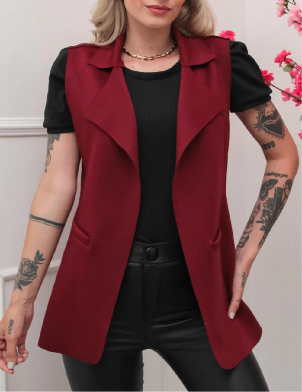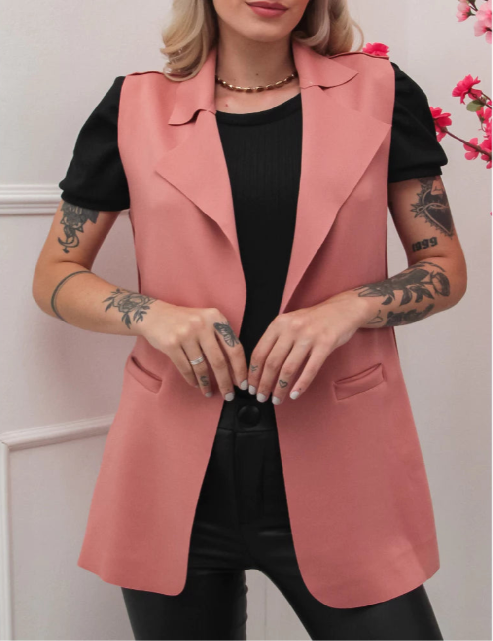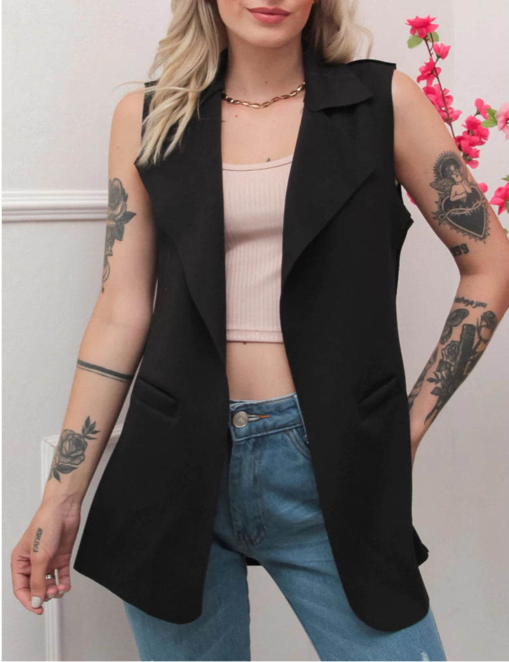 O Colete Feminino Longo OitoW Premium combina elegância e conforto graças ao tecido social com elastano, que oferece caimento perfeito e liberdade de movimento. Ideal para compor looks sofisticados, ele valoriza a silhueta e se adapta a diversas ocasiões, do ambiente profissional a eventos sociais. Uma peça versátil que eleva seu estilo com discrição e modernidade.