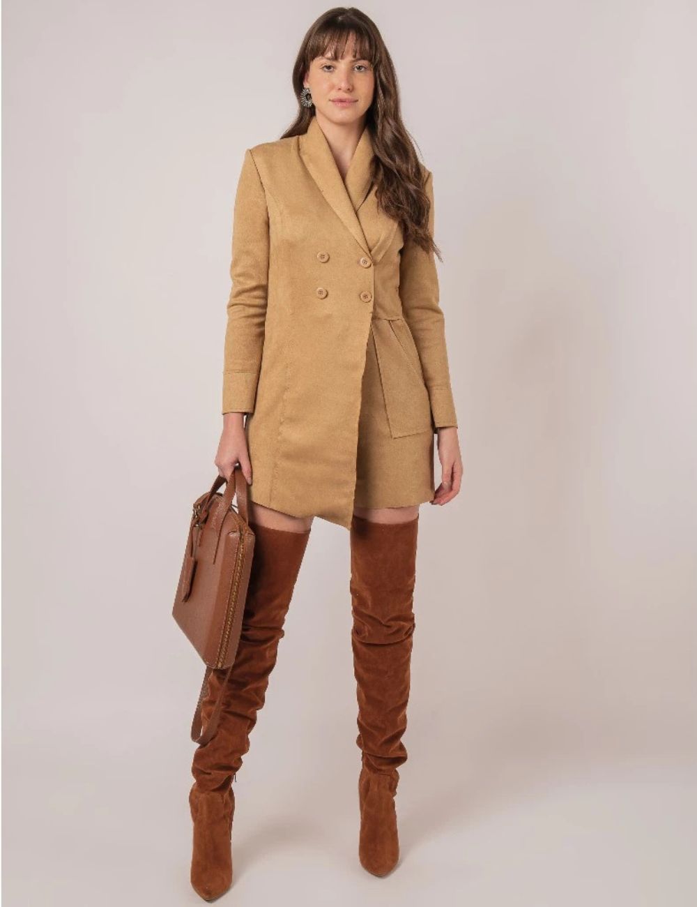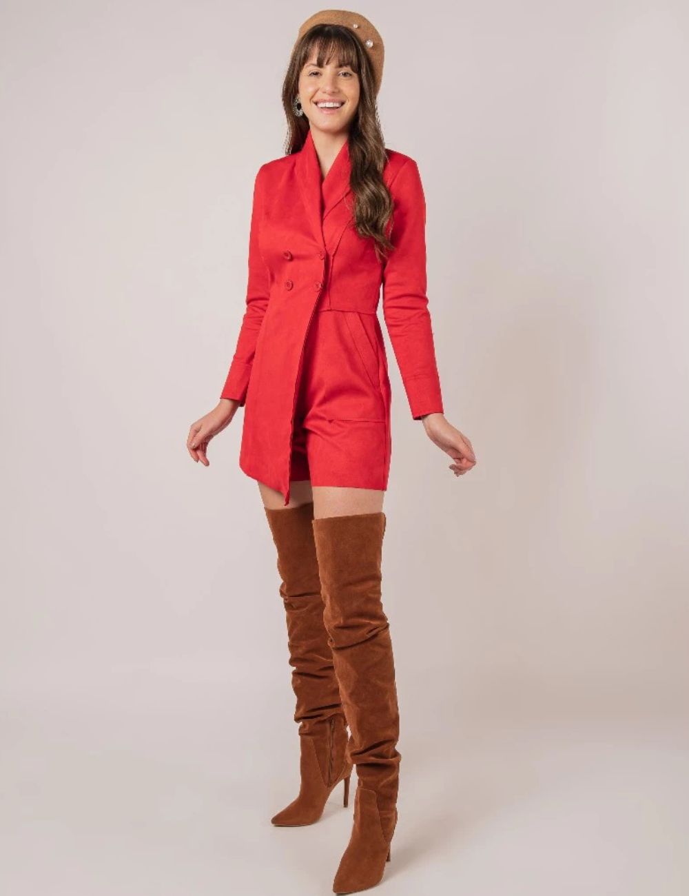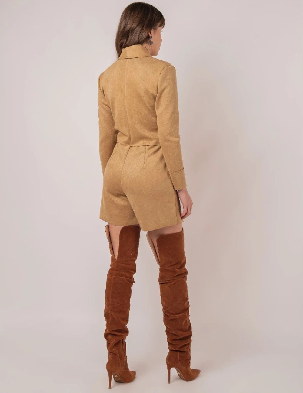 Macaquinho de Camurça Estilo Blazer Manga Longa